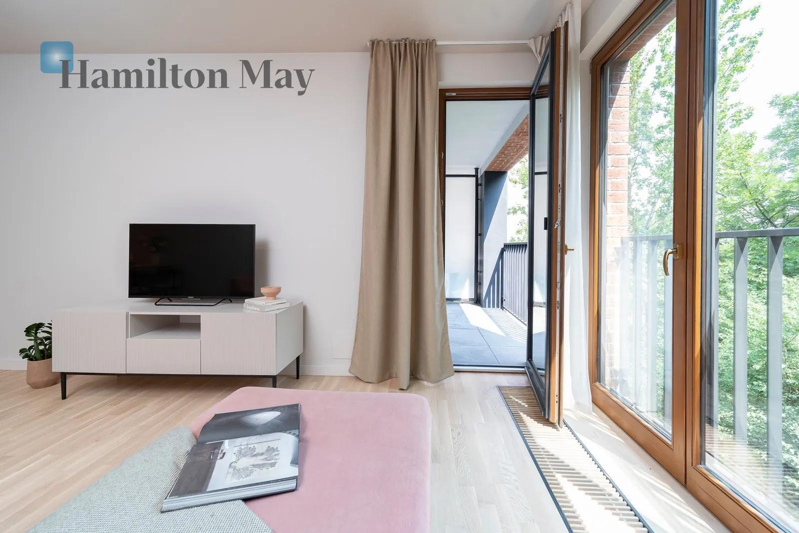 The apartment is very comfortable, the space was harmoniously designed by the architect, and from the balcony there is a view of the green wall of trees.
