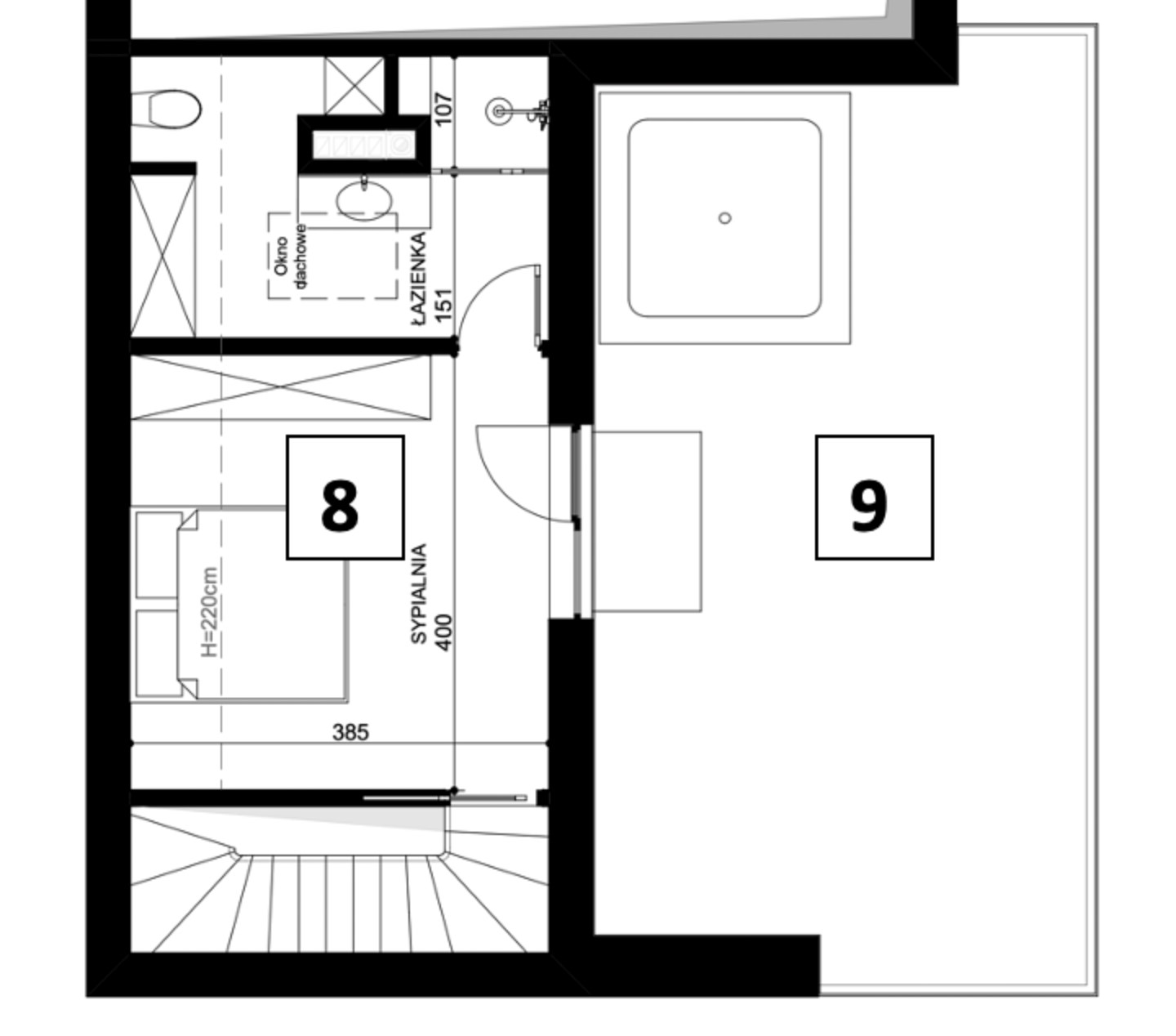Interiors designed in subdued colors (white, gray, light wood) with elegant black accents (lighting, fittings, balustrades).
